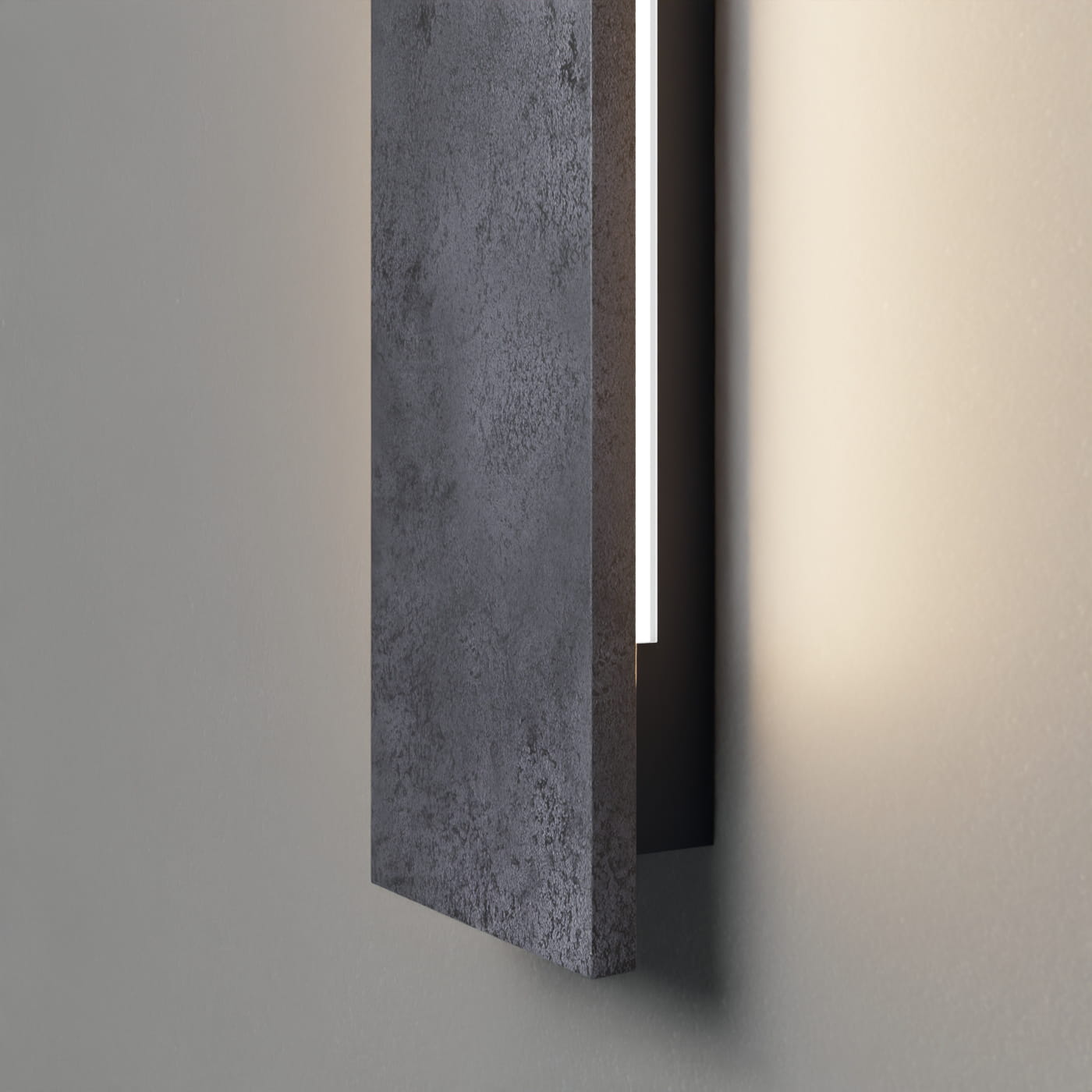 Front lampy to naturalny odlew z betonu architektonicznego, dzięki czemu każda lampa jest unikatowa.