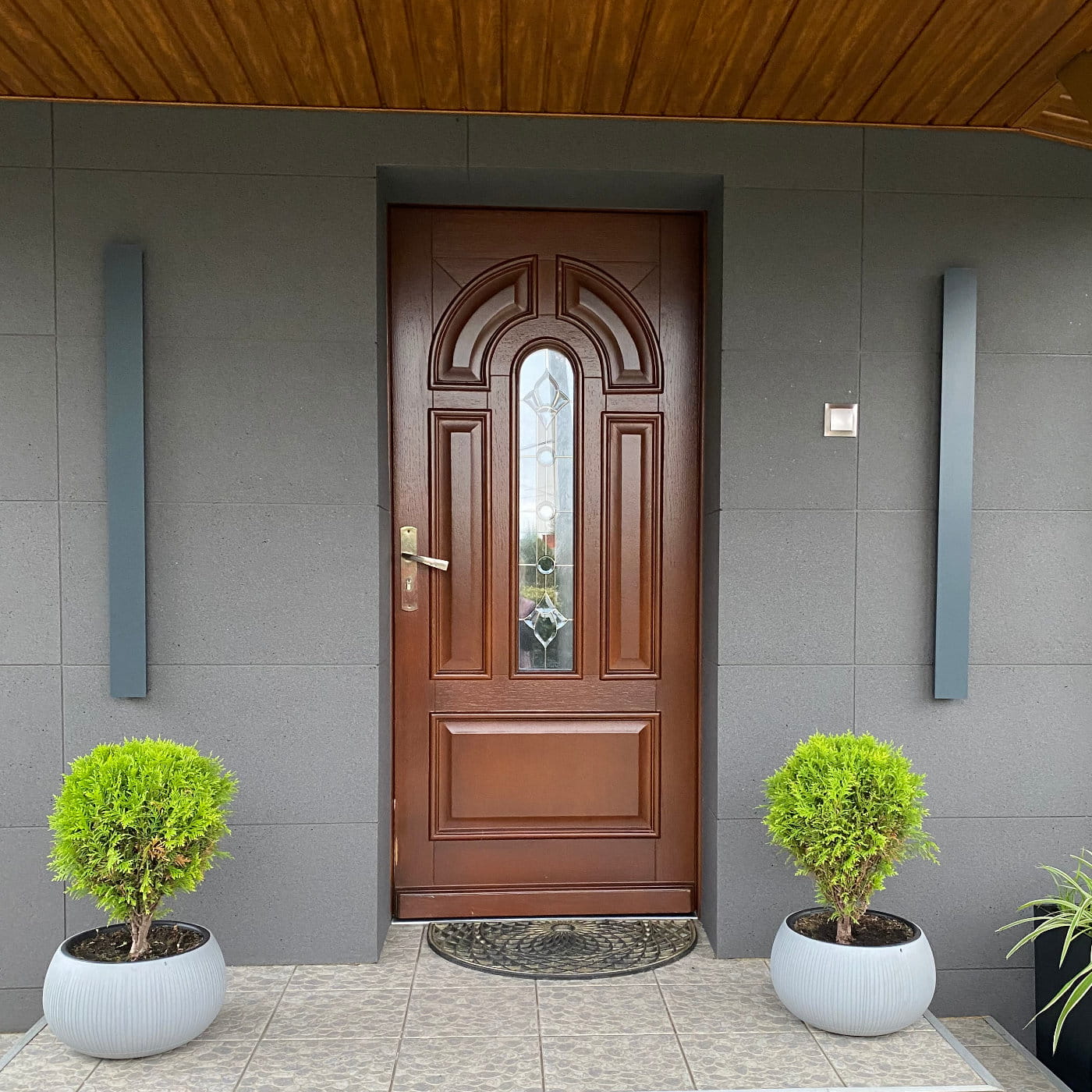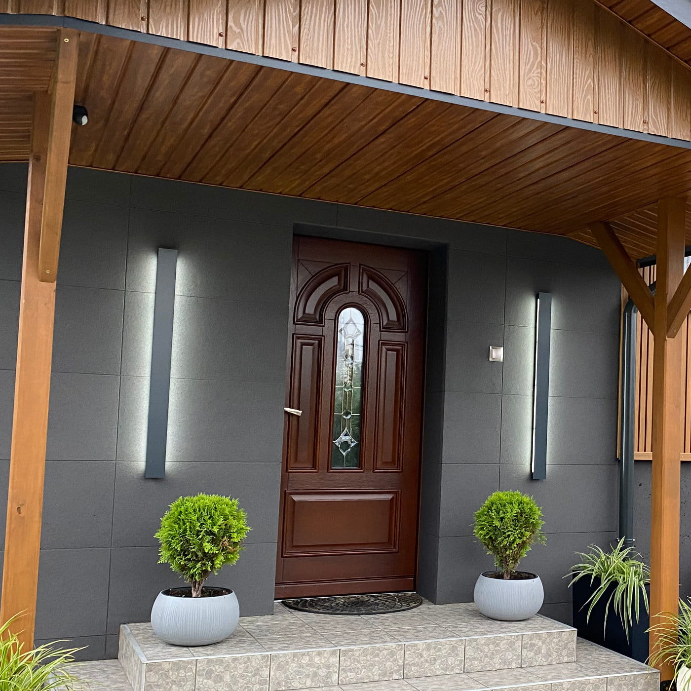 Rozświetla elewację światłem bocznym. Idealnie sprawdzi się zestawiona z lamelami, betonem architektonicznym i drewnem.