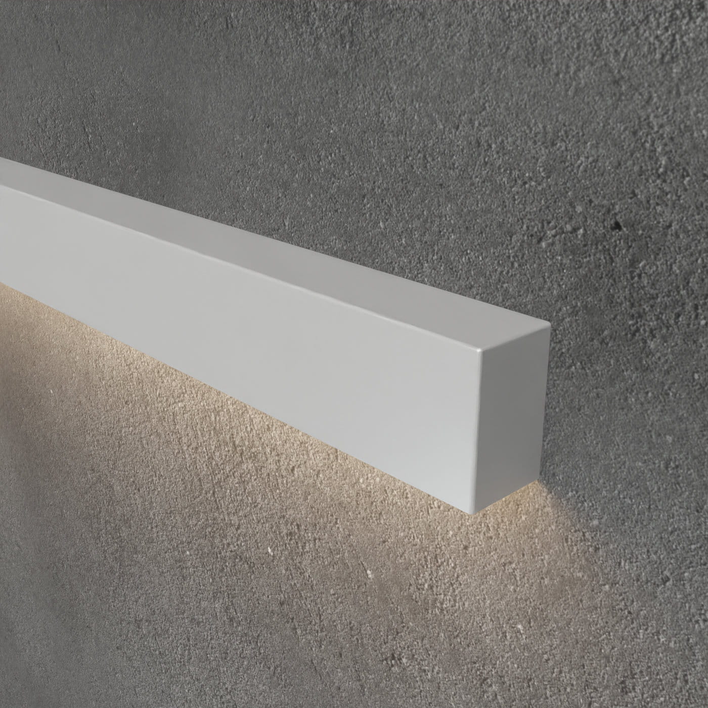Lampa elewacyjna CASS pozioma to smukła konstrukcja świecąca światłem rozproszonym wyłącznie w dół oprawy. Linia światła wypełnia pełną długość kinkietu.